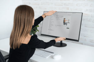 - Hauteur de l’écran : Haut de l’écran au niveau des yeux (ou légèrement en dessous)